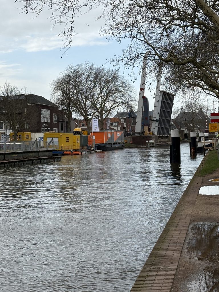 In de tijd dat de brug niet begaanbaar was, kon ik op mijn gemakje naar de andere brug wandelen, daar oversteken, weer terug wandelen en nog steeds was de pontonbrug niet teruggelegd. Toch is het allemaal goed geregeld. Eind maart moet de Koepoortbrug weer in functie zijn en kunnen we er weer 15 jaar tegen.