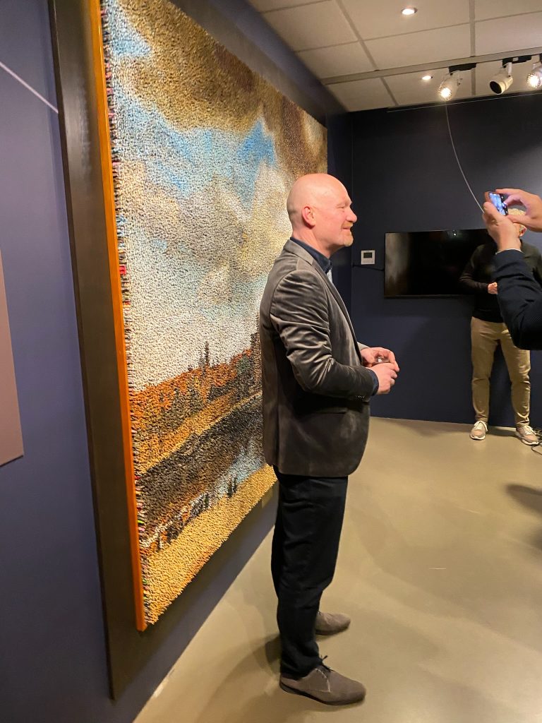 Vrijdagavond 12 december was in het Vermeer Centrum de officiële onthulling van het kunstwerk “Wij zijn Delft” van René Jacobs, ik schreef er al eerder over hier, hier en hier. Het hele weekeind is het Vermeer Centrum gratis open om het kunstwerk met eigen ogen te bewonderen, maar huisgenoot P en ik waren zo gelukkig dat wij bij de onthulling mochten zijn. Dat hadden we te danken aan vriendin E die vrijwilliger is bij het Vermeer Centrum, maar vrijdagavond al iets anders had. Wij mochten haar plaats innemen.